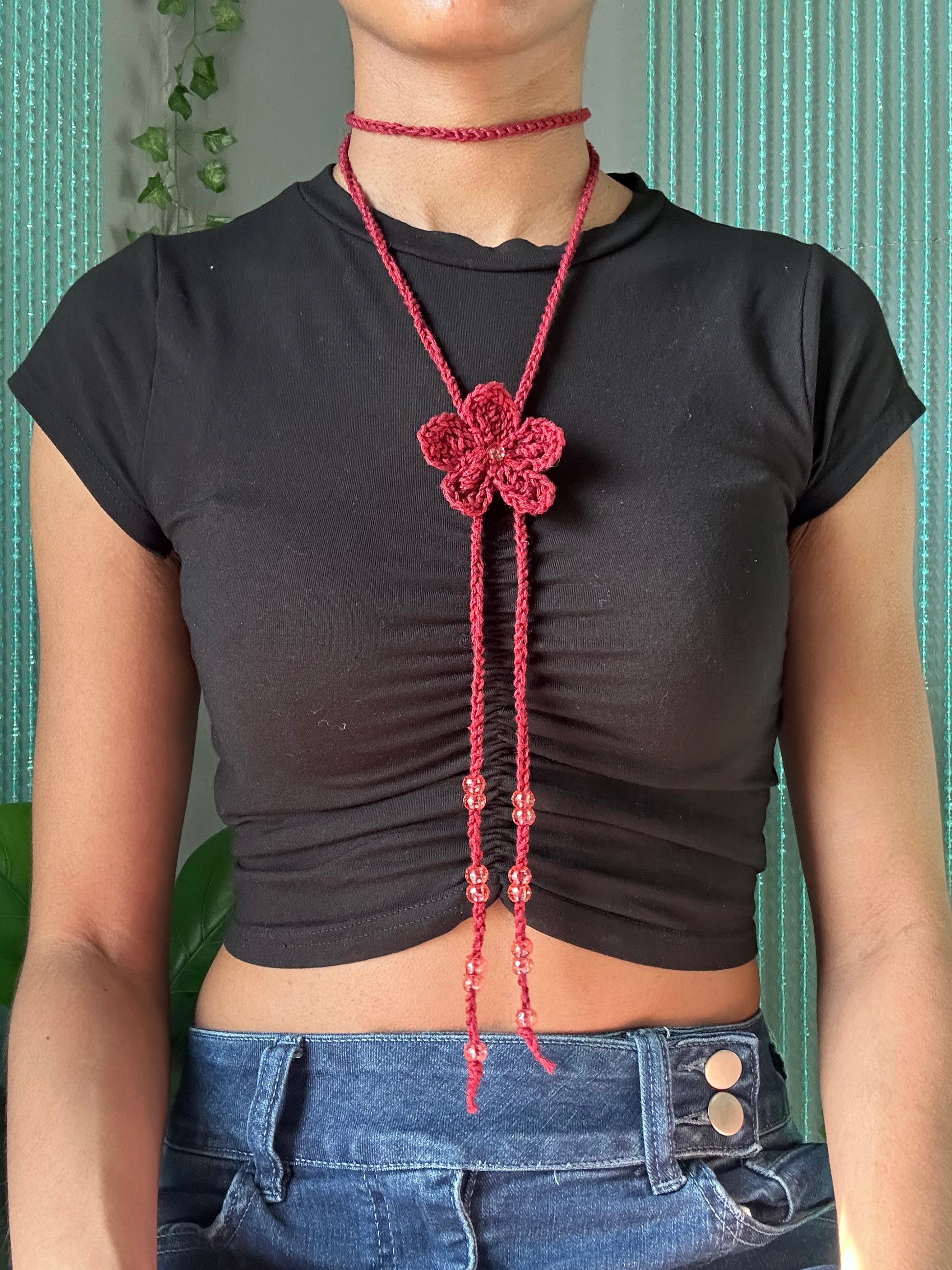 - The flower pendant measures 2.5in/6.3cm tall and wide. The strap measures 55in/140cm long.